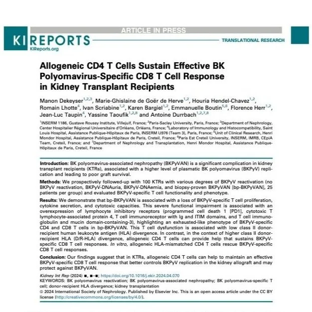 Allogeneic CD4 T Cells Sustain Effective BK Polyomavirus-Specific CD8 T Cell Response in Kidney Transplant Recipients